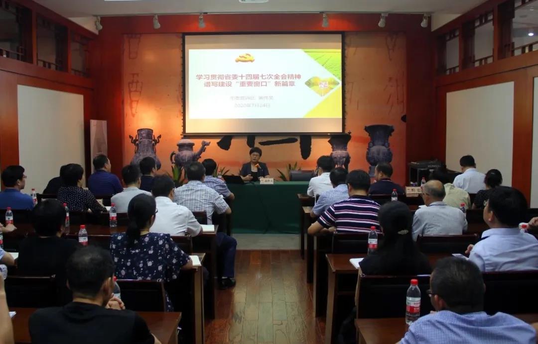 7月24日下昼,,,,,黄酒集团召开省委十四届七次全会精神主题宣讲会,,,,,约请市委宣讲团成员、市直机关工委常务副书记黄伟英作专题宣讲。。。。。